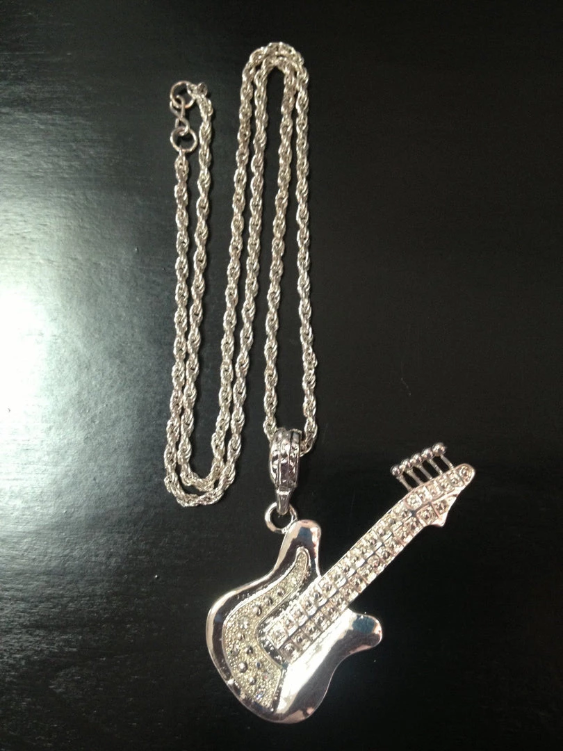 Silver metal guitar pendant, suitable for Rock star dress ups