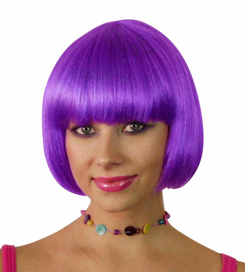 Electric bright purple smooth fibre wig styled into a bob, this fun wig is a great addition to your party disguise!Â