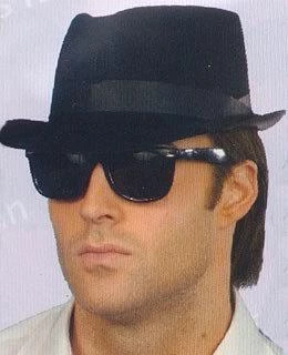 Blues Brothers style dark black framed sunglasses. Excellent for 80s.Â