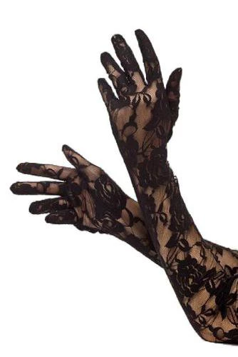 Long lacy black opera length lace gloves. Comfortable stretchy fit. Perfect for Great Gatsby or burlesque costume look. Nice and stretchy for a comfortable fitÂ