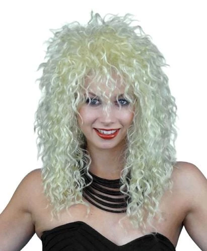 Are you looking to resemble the look of a CLASSIC hair-metal band, especially the front-man? This curly blonde wig, replicated with fibers resembling real human hair, not to mention with a realistic shine, will have people thinking they’ve gone through a blast from the past. Face paint and outfit sold separately.