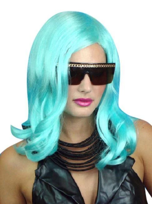 Just wait for the Paparazzi to rock up when you step out with this Lady Gaga costume wig, beautiful teal colour, long with a slight curl.