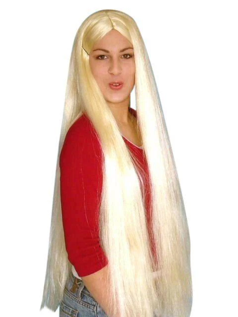Look at this wig! Isn’t it neat? Wouldn’t this wig make your Rapunzel, Lady Godiva costume complete? Uber-long and strait, this blonde wig can also be plaited.