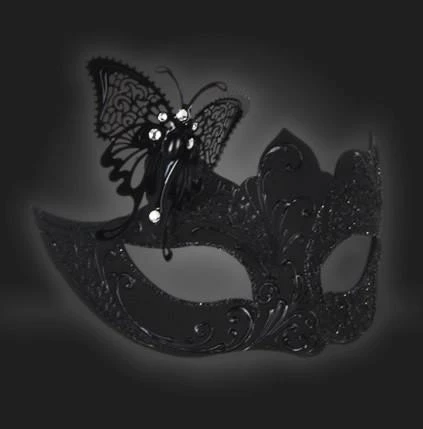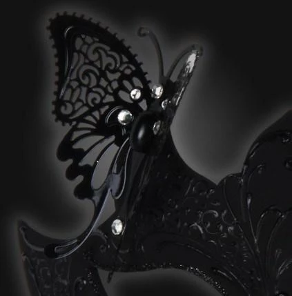 Intricate, delicate, feminine, the Little Butterfly is an embellished black Venetian ladies filigree mask with black a butterfly. Handmade in Venice, Italy. Comes with certificate of authentication.