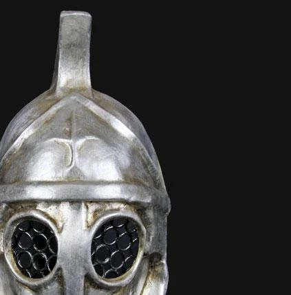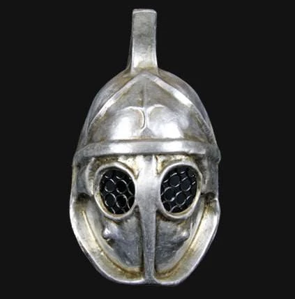 Awesome handmade plaster mask in the style of a Roman Gladiator. Made in Venice, it comes with a certificate of authenticity. The mask is wearable and secures with a ribbon but is also displayable with a small wall hanging triangle attached to the top.