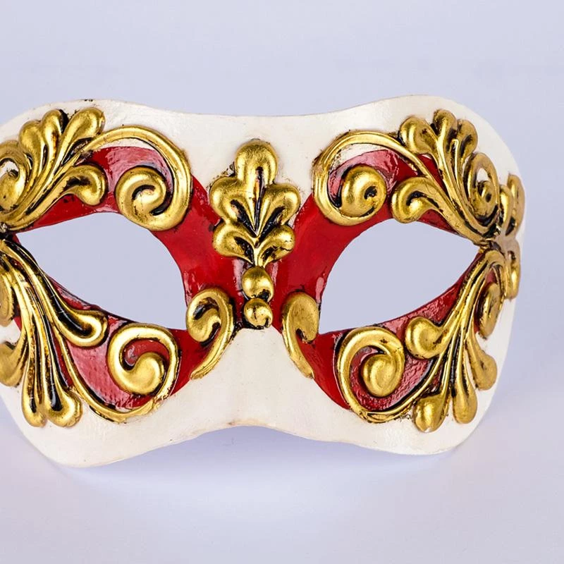 Handmade Venetian Mask imported to Australia, that comes with a certificate of authentication and secures with a ribbon tie.Â