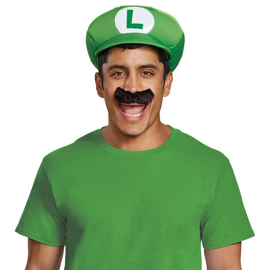 Dress up as your (second) favourite Nintendo character, Luigi from Super Mario. This kit for adults includes green Luigi cap with L and self adhesive faux moustache. Mario kits also available.
