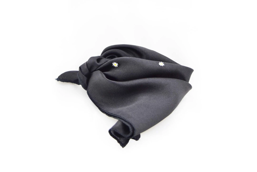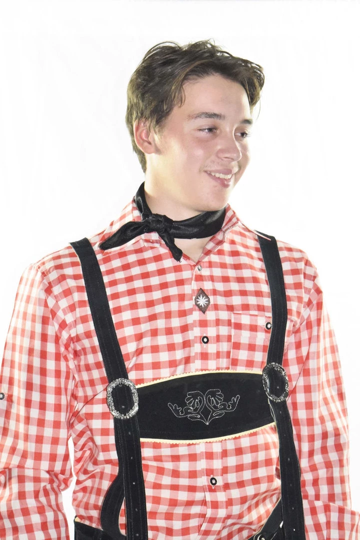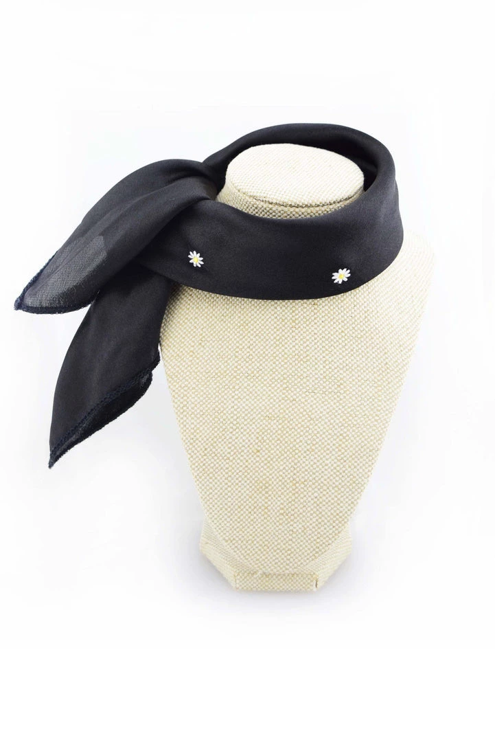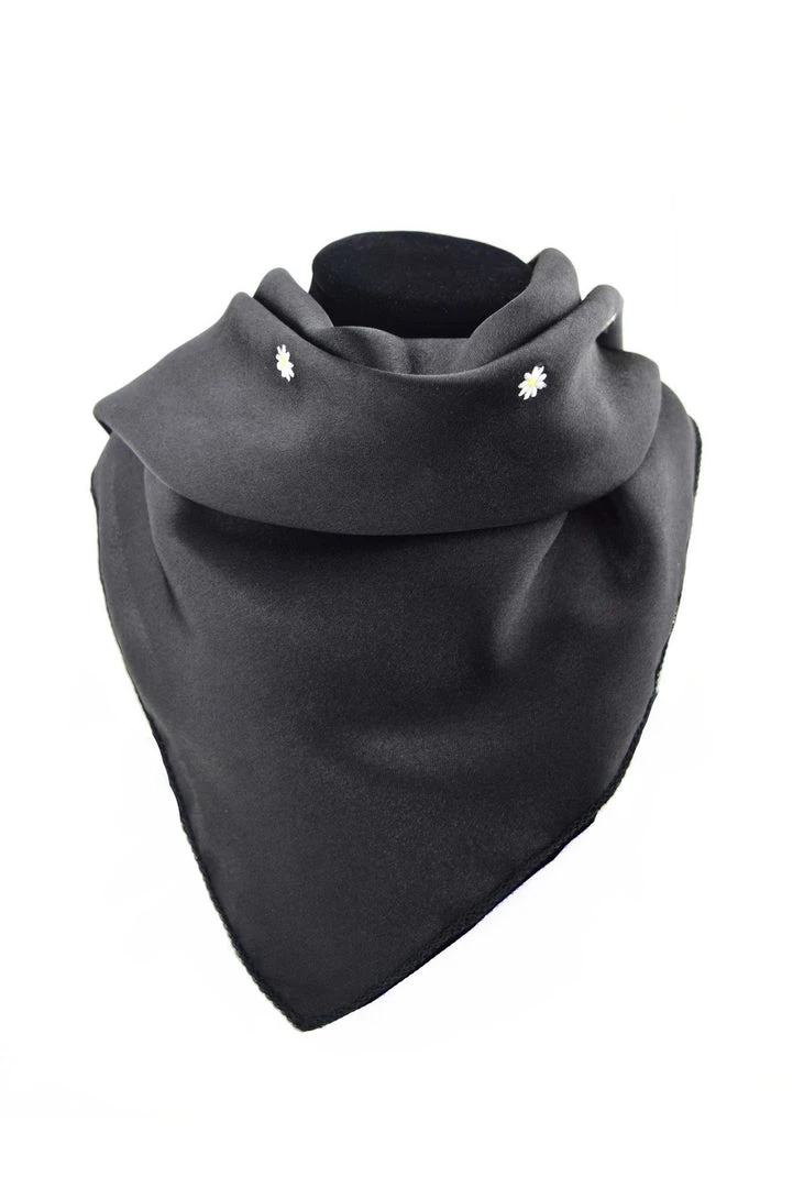 Traditional alpine style scarf to accessorise with your Oktoberfest costume. Satin scarf decorated with a smattering of embroidered alpine flowers. Unisex scarf suitable for both men and ladies. Wear it with Lederhosen or Dirndl.
