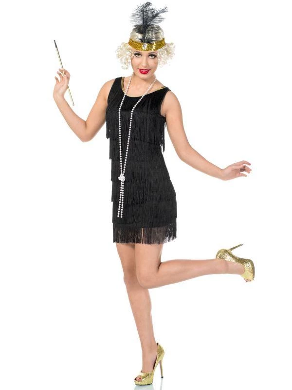 Frivolous fun fabulous flirty black or red fringed 1920’s flapper dress Women’s Hire costume.