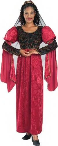 This Maroon Velvet Medieval Renaissance Maiden Women’s Costume For Hire comes with matching headdress.