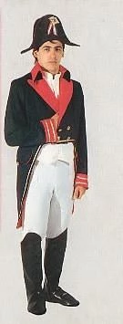 Jacket, vest, knickerbockers, bootcovers, and hat comprise this high quality costume of the Le Petit Caporal. Also suitable for a Les Misérables costume.Â