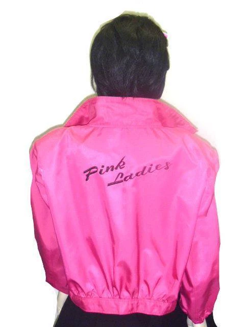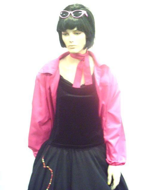 Black, full-circle skirts with pink poodle applique, tulle petticoats and hot pink Pink Lady Jackets with Pink Ladies embroidered on the back in black. Hire also includes your choice of hire wig. Shirt not included, range of cat-eye glasses sold in store and online.