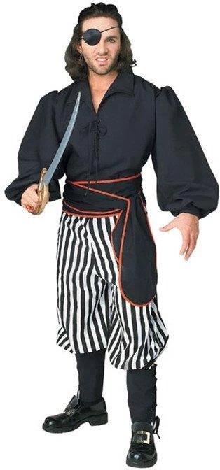 Shirt, belt, pants, boot covers, sword. Wigs, hats and scarfs also available. Eye patches available for purchase.
