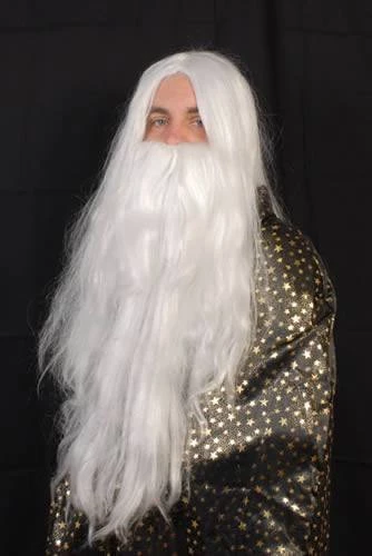 Very long white wizard wig and beard set.Â