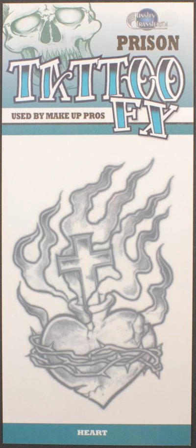 Temporary prison burning heart transfer stick-on tattoo. Looks actually like real ink in skin.