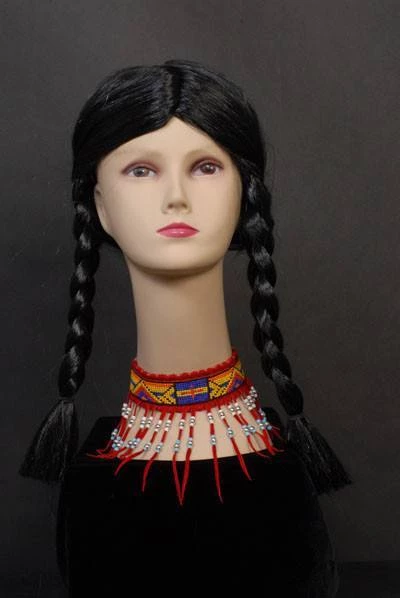 Beaded leather Native American choker in red, tan or brown.