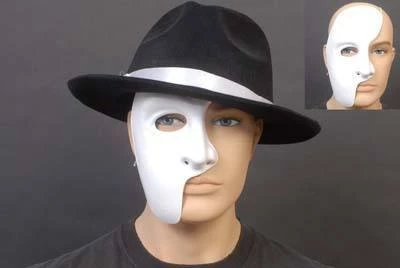Matte plain white plastic Phantom of the Opera half mask with elastic.Â