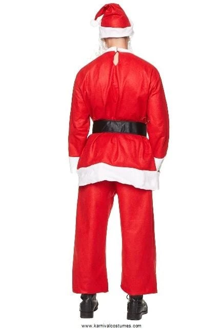 Quick, easy, budget Santa Suit Costume. Perfect for an quick change into Santa Claus this Christmas. This light weight costume has all the necessities for an express transformation. Costume includes Santa’s trademark red jacket top with white trim, matching hat, long white wavy beard, belt and red pants. Just the thing for Work Christmas parties, Christmas pub crawls and any other festivity the silly season calls for! Finish your look with accessories such as Santa’s wig, gloves, faux belly, bell and glasses, all sold separately.