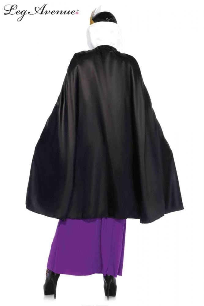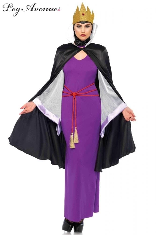 Mirror mirror on the wall, who’s the most wicked of them all? The baddies have all the fun. Have a fun time too dressing up as an Evil Queen in this stunning Leg Avenue costume. Hire this deluxe dark and deadly villain costume which includes stretch fitted purple dress with long sheer bell sleeves, cape, cowl and crown. The perfect antidote to all those Disney princesses. Perfect at Halloween.Β