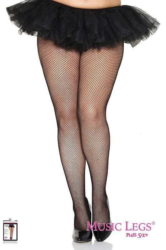 Black fishnet pantyhose in plus size. Longer and wider than regular size fishnets. Also great size for dressing in Rocky Horror Frankfurter fancy dress drag.