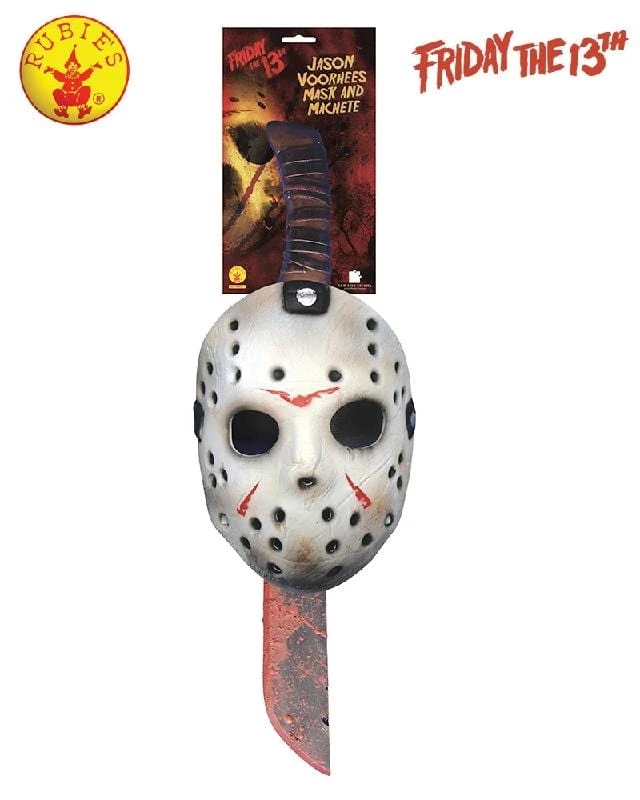 From the classic horror film Friday the 13th comes this Jason Voorhees kit which includes hockey mask and machete with fake blood. Licensed Friday the 13th product.