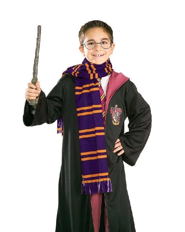 Hogwarts scarf in Gryffindor house colours. Robe, glasses, tie and wand all sold separately.