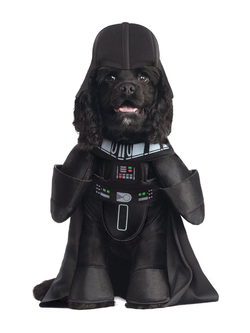 Ultimate villain of the original trilogy, Darth Vader was born Anakin Skywalker, a Jedi lured to the dark side by Palpatine. This iconic Lucas Film and Disney anti-hero of the Star Wars series, Darth is father to Luke and Leia and characterised by his iconic black robes, cape, helmet and breathing device. Help your pup become the ultimate reigning Sith Lord of the Galactic Empire today – and may the force be with you.