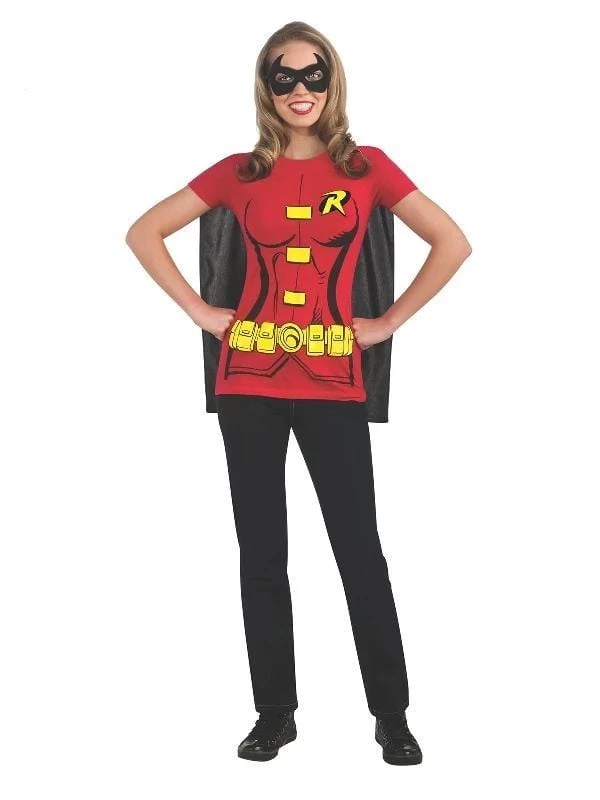 - T-Shirt with printed feature on front including the Robin logo, utility belt and body definition