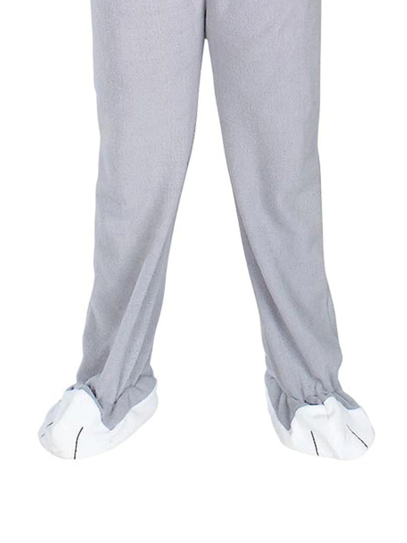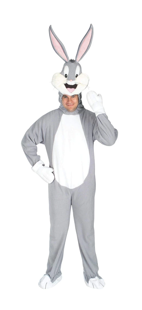- Jumpsuit has attached character head featuring 3D face and stand up bunny ears