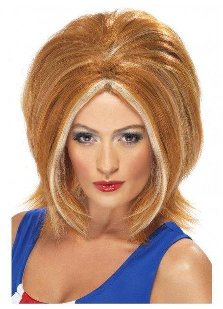 Girl Power ruled the 90s. This Ginger Spice Girls style wig matches our Ginger Spice Union Jack dress perfectly for one of the iconic looks of the 1990s. Wig is ginger with blonde streaks.