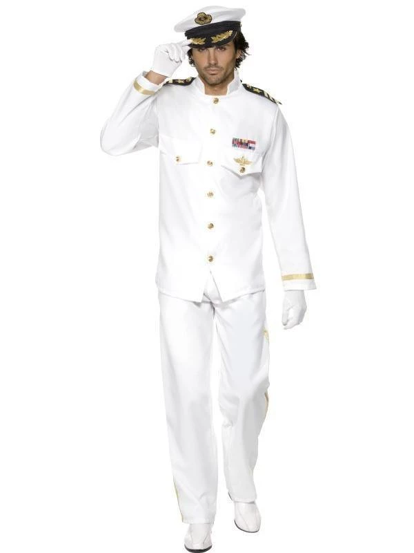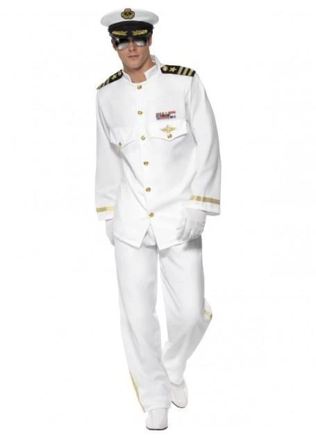 Women do love a man in uniform. This deluxe naval officer costume is perfect for the 80’s classic Officer and a Gentleman or for James Bond as Commander Bond. Costume includes cap, jacket with attached epaulets, trousers and gloves. Aviators sold separately.