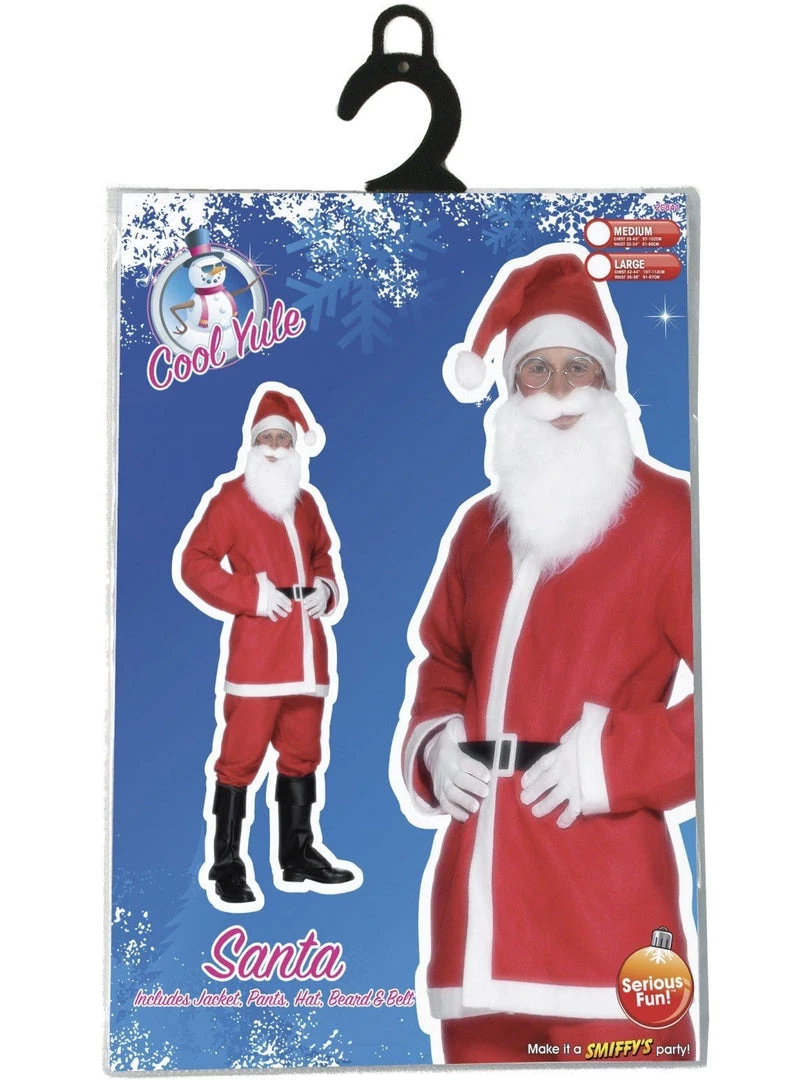 Ho ho ho! Have a cheap and cheerful Christmas in this economical, disposable Santa Claus costume for adults. Light weight costume includes hat, beard, belt, jacket and pants. All other accessories sold separately. Great for fun runs and novelty occasions.