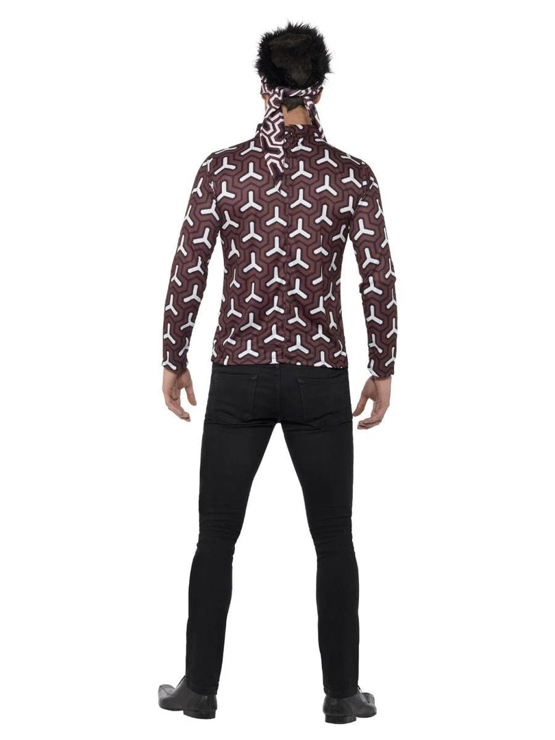Brown printed top and matching bandana with attached black hair. Pants not included.