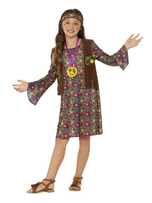 Hippy’s were a youth movement from the 1960’s. Standing for Peace and Love, they were often seen in floral printed Gogo dresses with bell sleeves, long flowing hair adorned with a flower crown or a headband and would mostly be bare foot – It’s all about connecting with nature! Find your flower power this summer in our sweet Children’s Hippie Girl Costume.Â