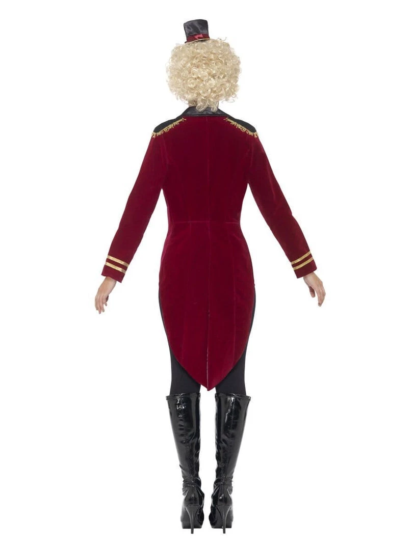 Come Ladies and Gentleman and welcome to the wonderful world of the circus. Our Ringmaster Costume comes with a Deep Red velvet feel tailcoat Jacket with Gold detailing. A Black Ribbon collar and & Mini Top Hat completes the look of this costume.