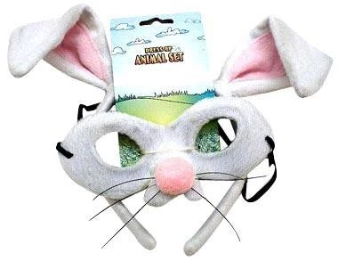 White and Pink Plush Easter Bunny White Rabbit Dress Up Set includes bunny ears on headband and matching mask with pink pom pom nose and whiskers. Perfect for Easter and Book Week.Â