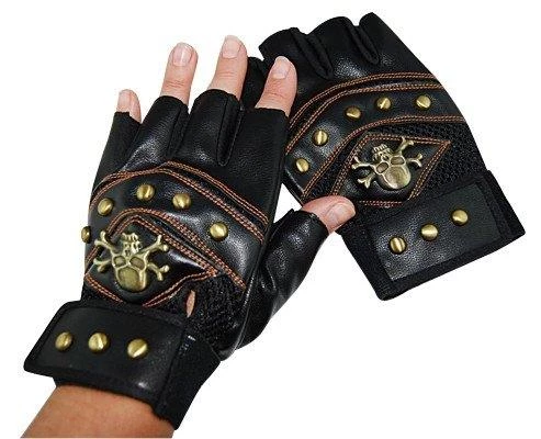 Steampunk finger-less gloves with studs and crossbones