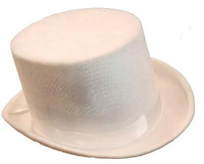 White velvet top hat perfect for Hollywood costumes and standing out from the crowd. Â