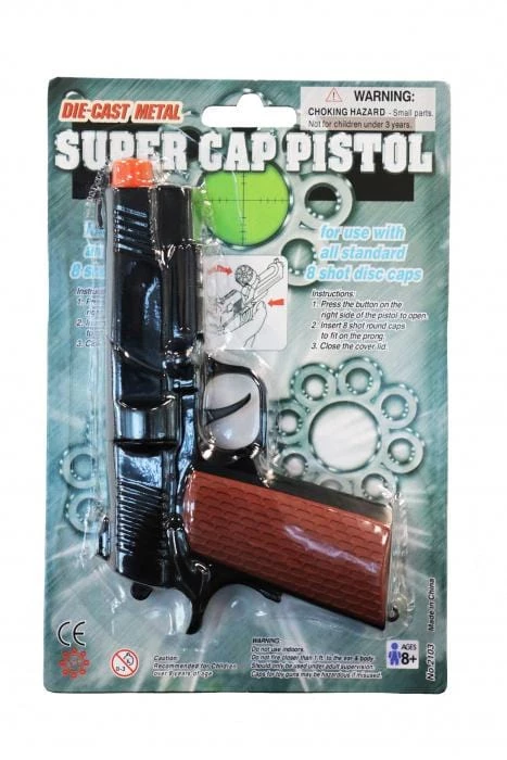 Our black diecast pistol is one of the most realistic styles on the market. Their metal body, deluxe quality and realistic sounds capabilities make them the obvious choice for your next costume accessory. Not Included: Â 8 Shot Caps sold separately