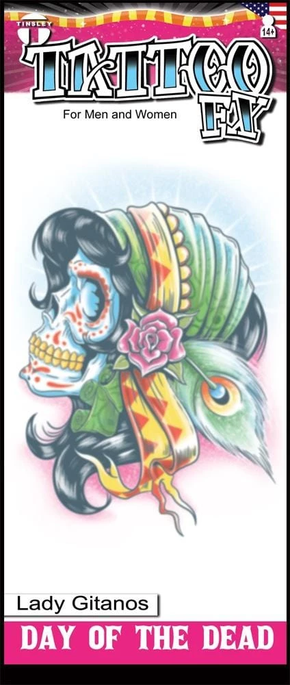 Day of the Dead Lady Gitanos Temporary Tattoo. Complete your Mexican costume with this great tattoo. Size 9x14cm