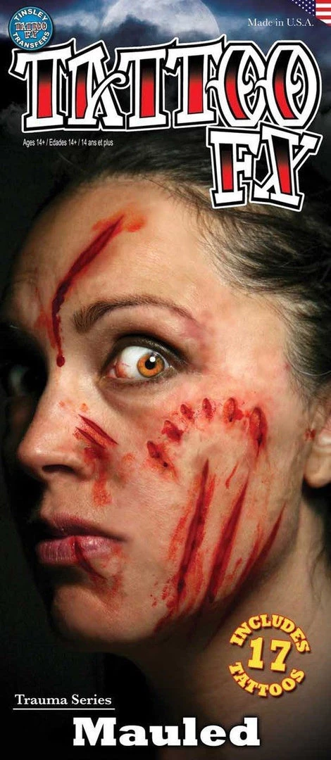Mauled Halloween temporary tattoos. The Most Realistic Temporary Tattoos Anywhere! Includes 17 Tattoos!
