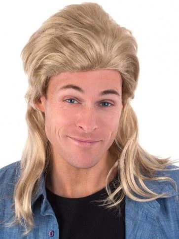 Blonde 80’s bogan mullet costume wig. Wig may require additional styling to achieve the desired look. If required use hairspray to hold desired style.