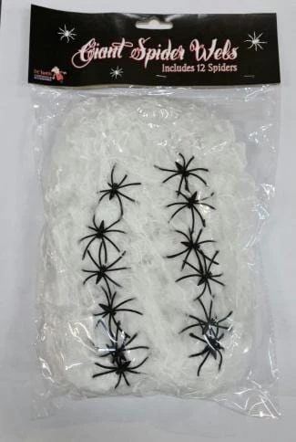Halloween decoration spider web with 12 black spiders. 240 grams