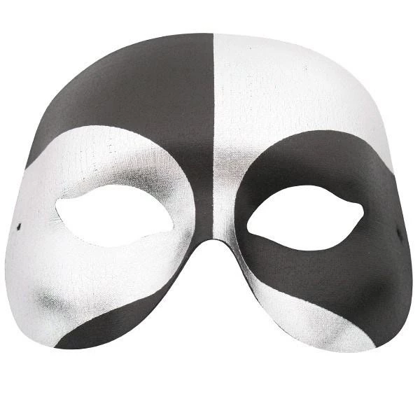 Black and silver masquerade eye mask with an elastic strap. Get that mysterious glam look for less!