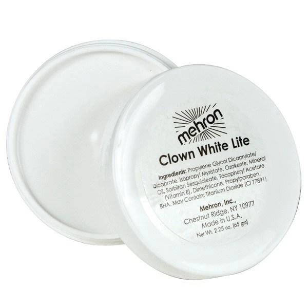 This is a lighter and creamier version of Mehron’s professionally used Clown White. Grease-less, talc-free and containing Vitamin E, it is lightweight but firm, providing full coverage with a lighter feel. Apply with a sponge in a dabbing motion and remove with make-up remover. This smaller size package contains 56g of this high quality product.